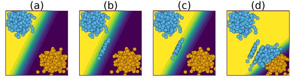 \[ \begin{aligned} \theta_{t+1} &= \theta_t - \nabla_{\textcolor{orange}{\theta}} \{ {\text{yloss}(M_{\theta}(\mathbf{x}),\mathbf{y})} + \text{div}(\textcolor{purple}{\mathbf{x}^*},\mathbf{x}^+,y^+; \theta) \} \\ \textcolor{orange}{\theta^*}&=\theta_T \end{aligned} \]