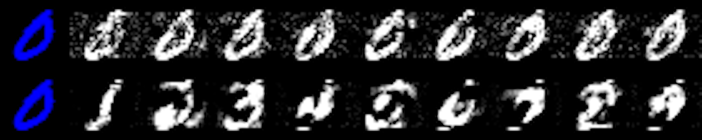 \[ \begin{aligned} \mathbf{x}_{t+1} &= \mathbf{x}_t - \nabla_{\textcolor{purple}{\mathbf{x}}} \{ \text{yloss}(M_{\textcolor{orange}{\theta^*}}(\mathbf{x}),\mathbf{y^{\textcolor{purple}{+}} }) \\&+ \lambda \text{reg}(\mathbf{x};\cdot) \} \\ \textcolor{purple}{\mathbf{x}^*}&=\mathbf{x}_T \end{aligned} \]